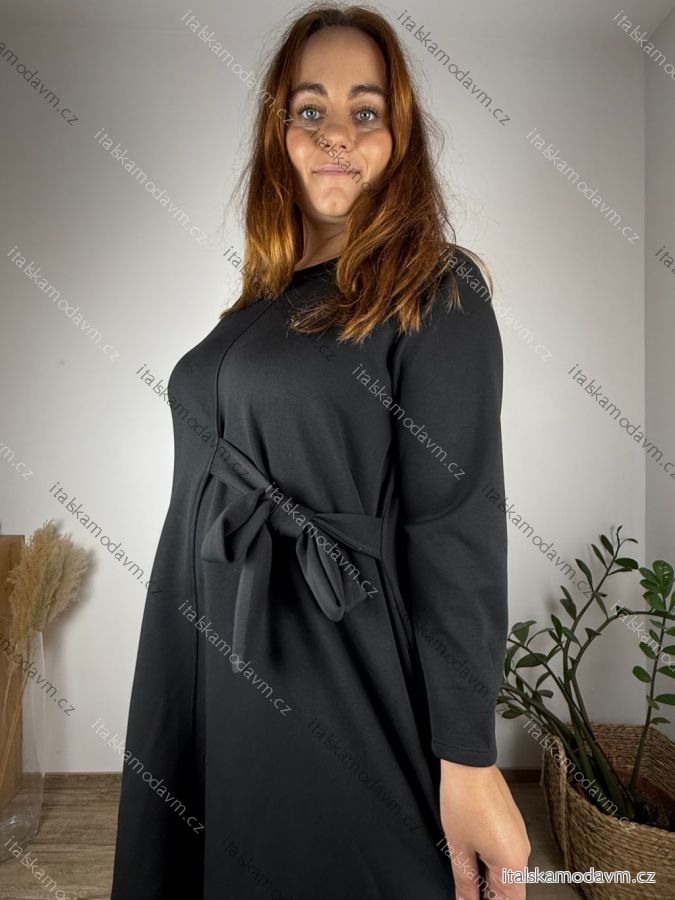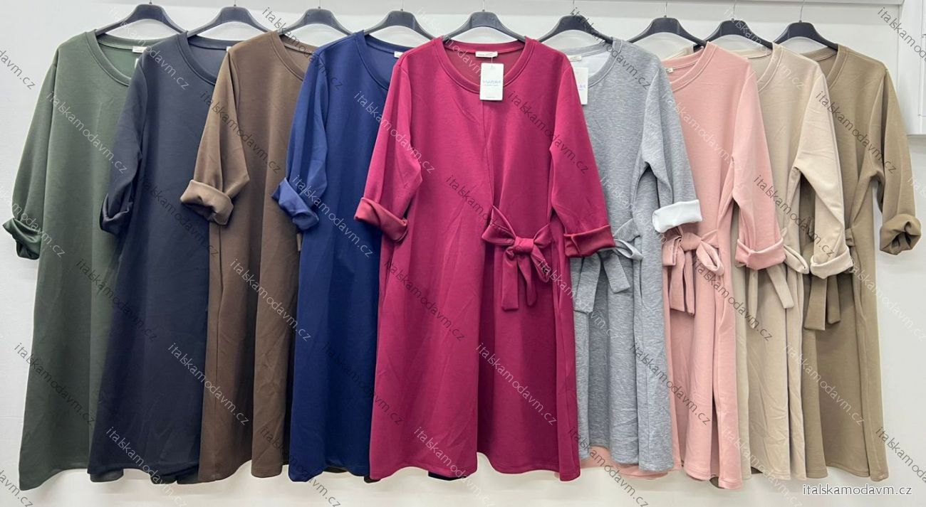 Šaty máslové s kapsami dlouhý rukáv dámské nadrozměr BARBARA (48/50/52 ONE SIZE) ITALSKÁ MÓDA IM425694