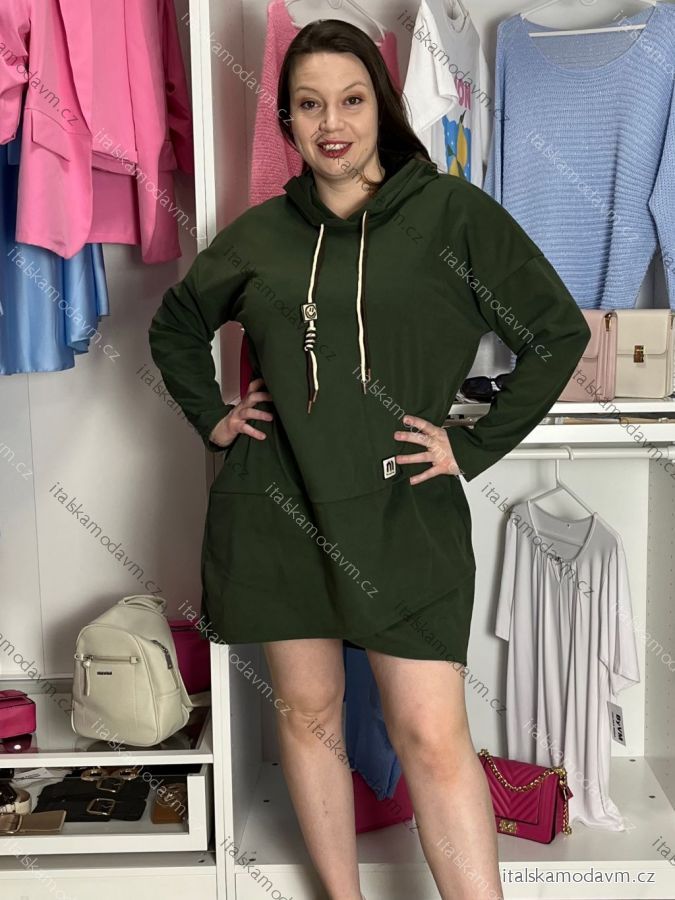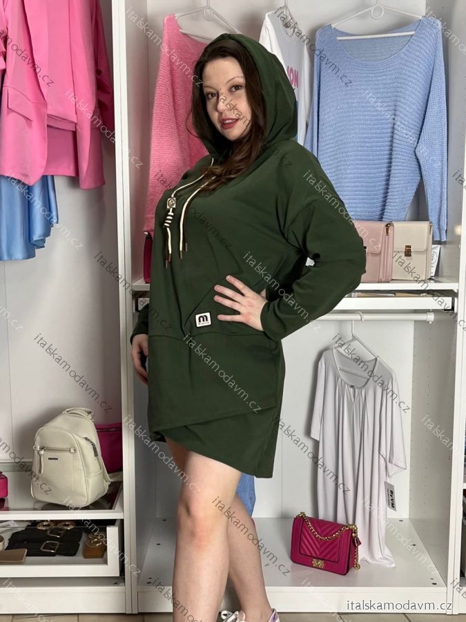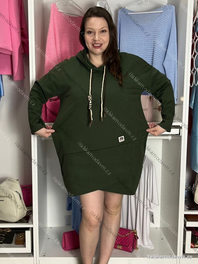 Šaty mikinové s kapucí dlhý rukáv dámske nadrozmer (40/42/44 ONE SIZE) TALIANSKA MÓDA IM425684