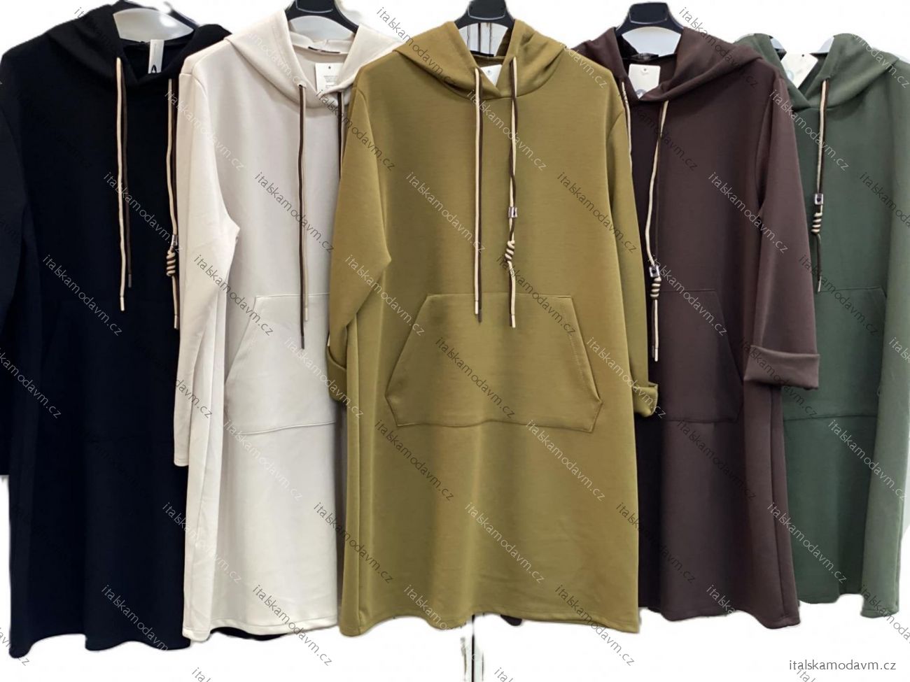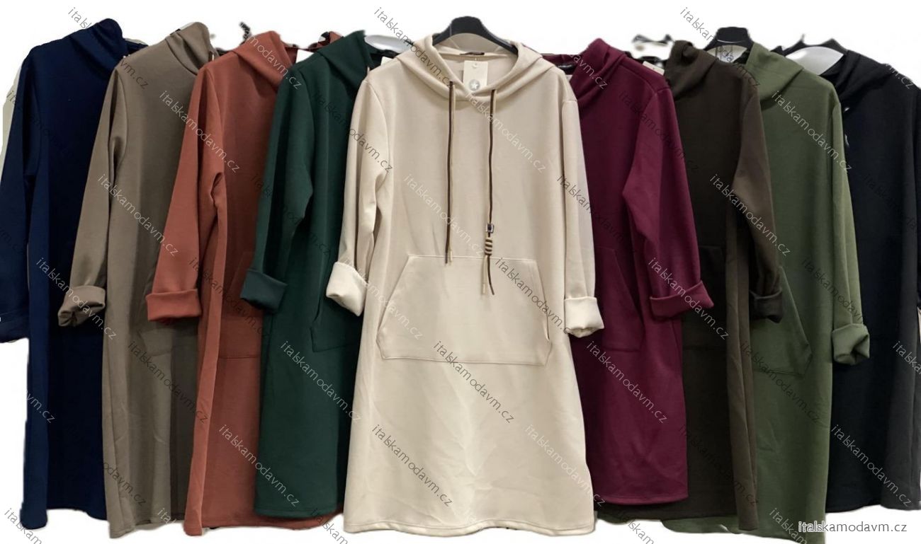 ZBOŽÍ (22747) > Šaty mikinové s kapucňou a vreckami dlhý rukáv dámske nadrozmer (50/52/54 ONE SIZE) TALIANSKA MÓDA IMC25336