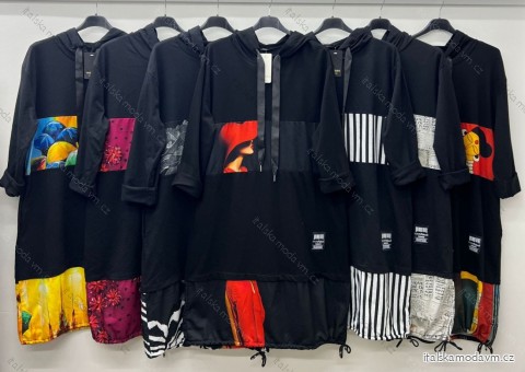 Šaty mikinové s kapucňou dlhý rukáv dámske nadrozmer (44/46/48 ONE SIZE) TALIANSKA MÓDA IM424695