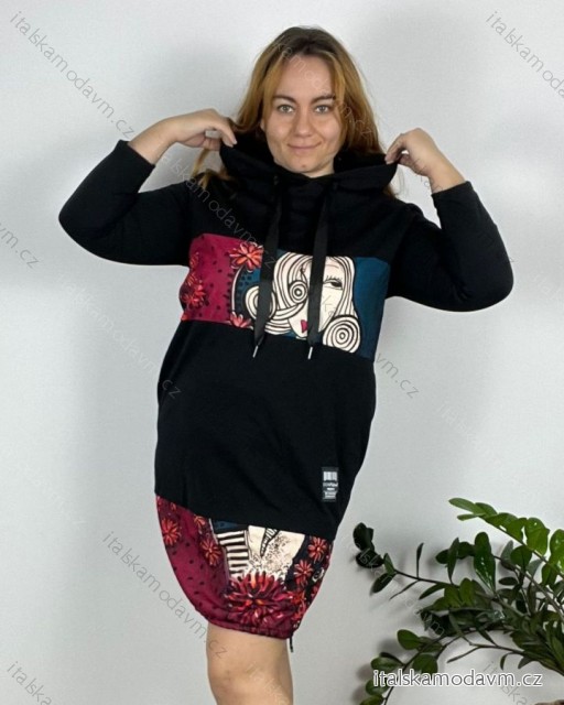 ZBOŽÍ (21549) > Šaty mikinové s kapucňou dlhý rukáv dámske nadrozmer (44/46/48 ONE SIZE) TALIANSKA MÓDA IM424695