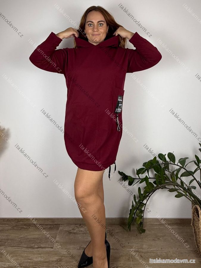 Šaty mikinové teplé dlouhý rukáv dámské nadrozměr ZORA (52/54/56 ONE SIZE) ITALSKÁ MÓDA IM425693