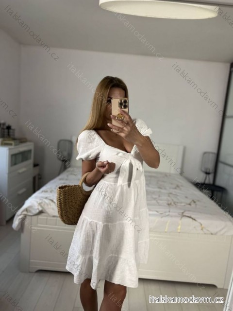 Šaty mušelín krátky rukáv dámske (S/M/L ONE SIZE) TALIANSKA MÓDA IMWCN24002/DU - biela - M / L