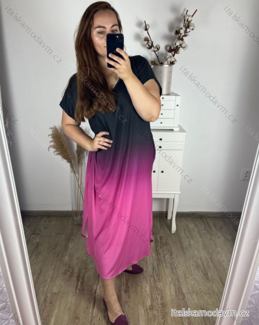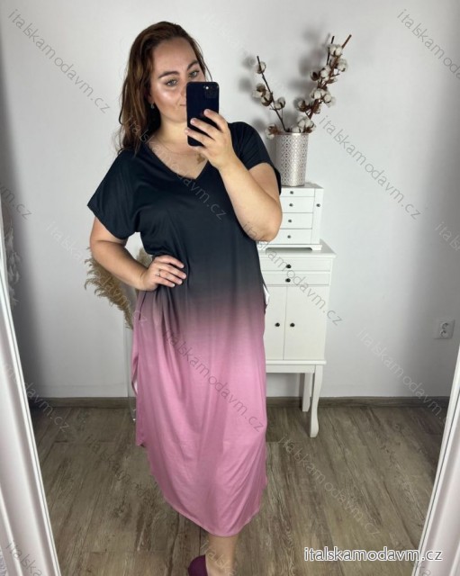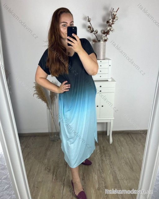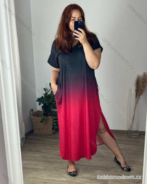 Šaty ombré dlhé krátky rukáv dámske nadrozmer (58/60/62 ONE SIZE) TALIANSKA MóDA IM424279/DR