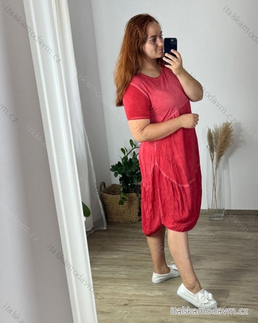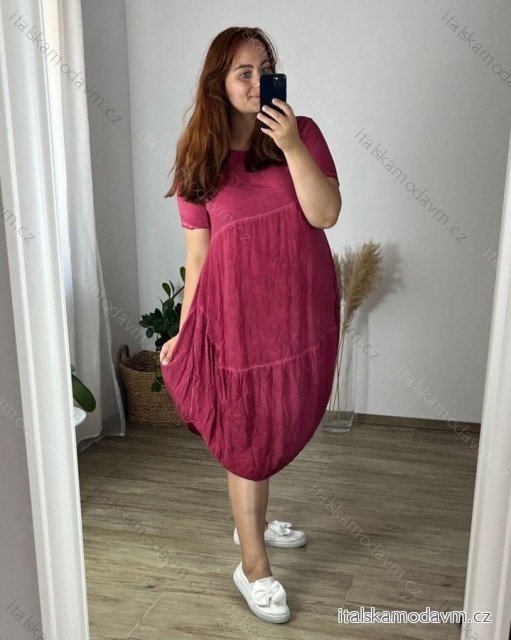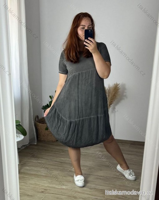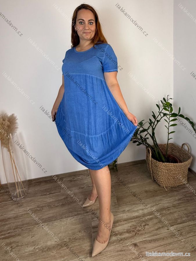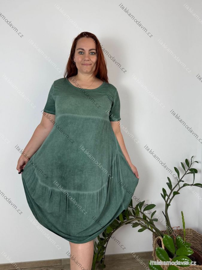 Šaty oválne letné voľnočasové oversize krátky rukáv dámske MONZA (XL/2XL/3XL ONE SIZE) TALIANSKA MÓDA IM422510