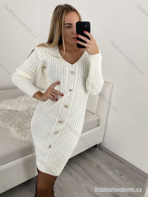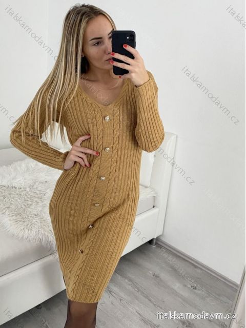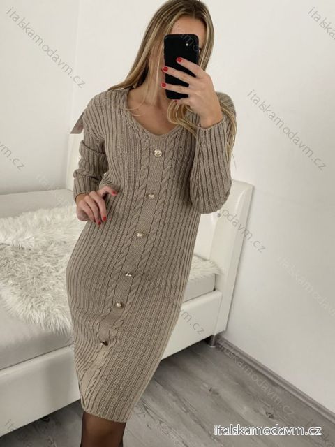 Šaty pletené dlhý rukáv dámske (S/M ONE SIZE) TALIANSKA MÓDA IMWA223595/DR S/M béžová