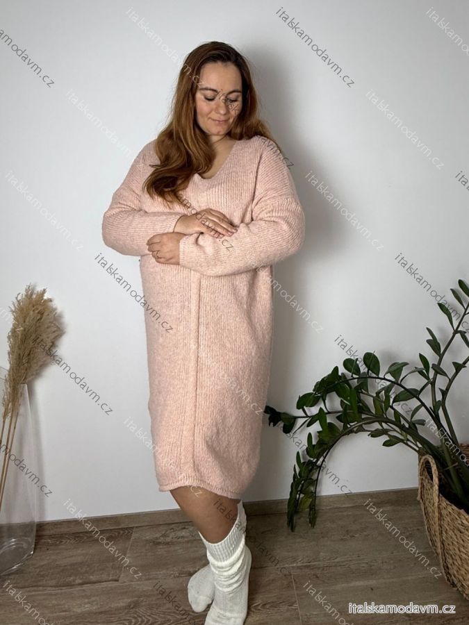Šaty pletené dlhý rukáv dámsky nadrozměr (3XL / 4XL ONE SIZE) TALIANSKÁ MÓDA IM821028 staroružová 3XL / 4XL ONE SIZE