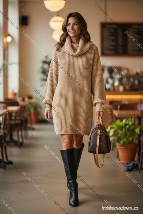 Šaty pletené s rolákom dlhý rukáv dámske nadrozmer (48/50/52 ONE SIZE) TALIANSKA MÓDA IMD25331