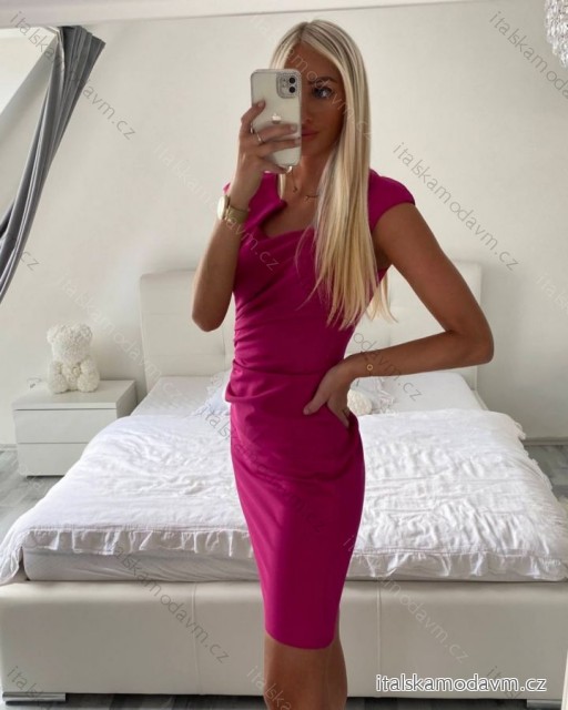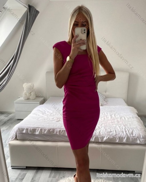 Šaty pouzdrové společenské elegantní bez rukávů dámské (S-XL) ITALSKÁ MÓDA IMM22Q51239-18/DUR - růžová fuchsiová - XL