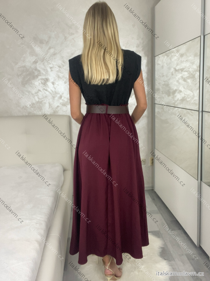 Šaty s opaskom krátky rukáv dámske (S/M/L ONE SIZE) TALIANSKA MÓDA IMM25M5898/DU S/M/L vínová