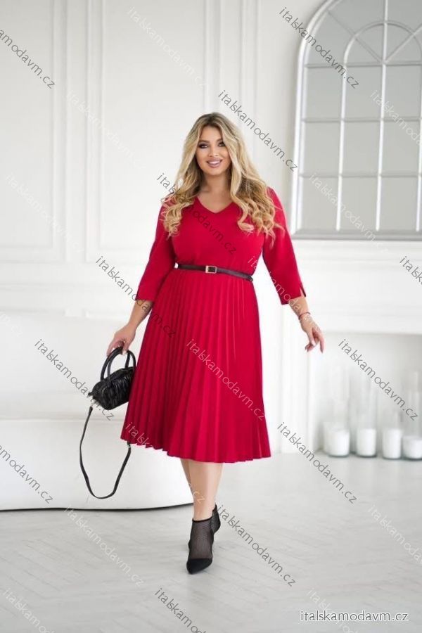 Šaty s páskem elegantní 3/4 rukáv dámské nadrozměr (38-48) POLSKÁ MÓDA PMLLD255078-1/DUR 48 červená
