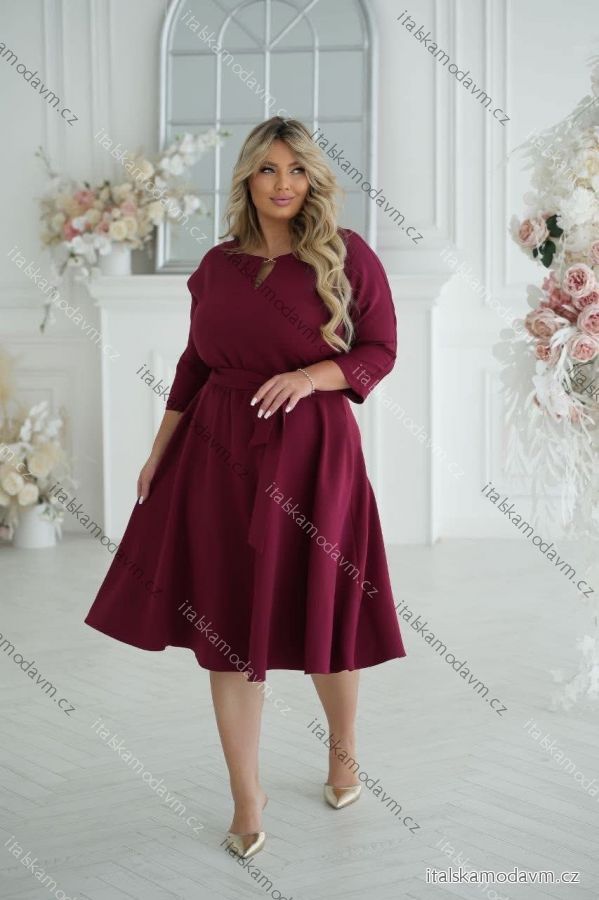 Šaty s páskem elegantný 3/4rukáv dámske nadrozmer (38-48) POLSKÁ MÓDA PMLLD255056-2/DU 46 vínová