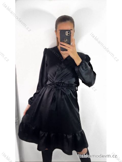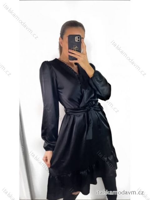 ZBOŽÍ (22801) > oblečenie dámske (18150) > šaty (9668) > Šaty saténové dlhý rukáv dámske (S/M ONE SIZE) TALIANSKA MÓDA IMWD23101/DU S/M čierna