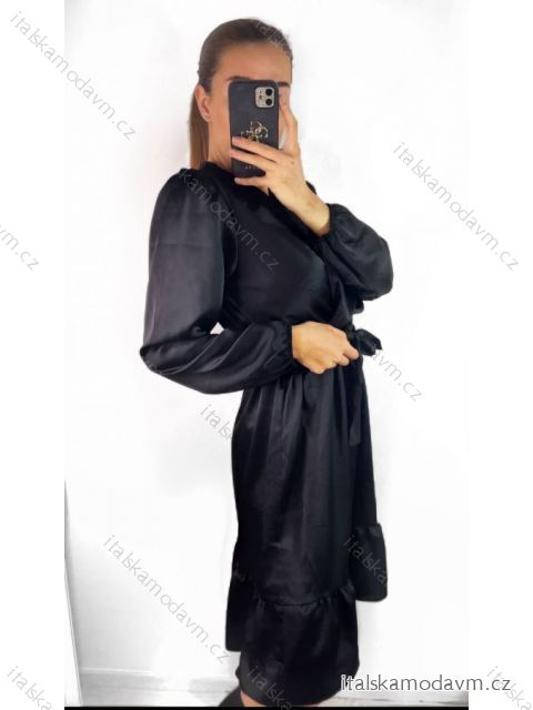 Šaty saténové dlhý rukáv dámske (S/M ONE SIZE) TALIANSKA MÓDA IMWD23101/DU S/M čierna