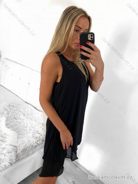 Šaty šifonové bez rukávů dámské (S/M/L ONE SIZE) ITALSKá MóDA IM322103/DUR černá