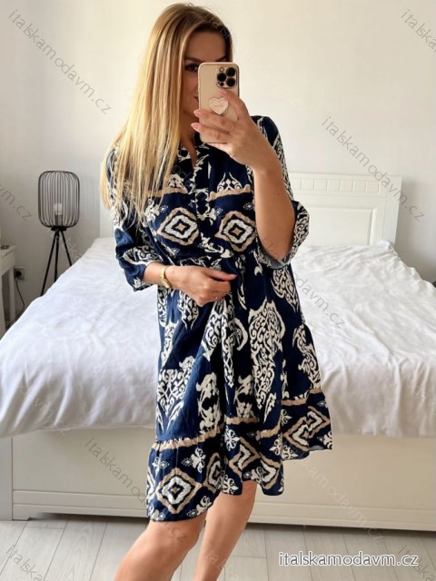 Šaty španělské letní krátký rukáv dámská (S/M/L ONE SIZE) ITALSKÁ MÓDA IMM24M4247/DUR - tmavě modrá - M/L