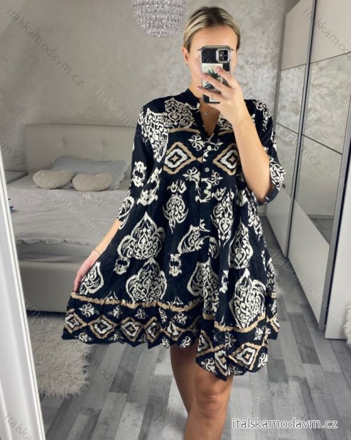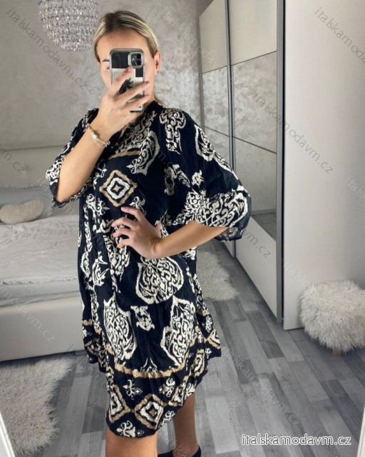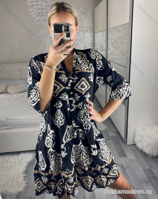 ZBOŽÍ (22983) > oblečenie dámske (18325) > šaty (9718) > šaty španielskej (43) > Šaty španielskej letný krátky rukáv dámska (S/M/L ONE SIZE) TALIANSKA MÓDA IMM24M4247/DUR - čierna - M / L