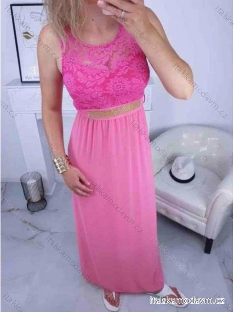 Šaty společenské dlouhé s krajkou bez rukávu dámské (S/M ONE SIZE) ITALSKÁ MÓDA IMM24M7450