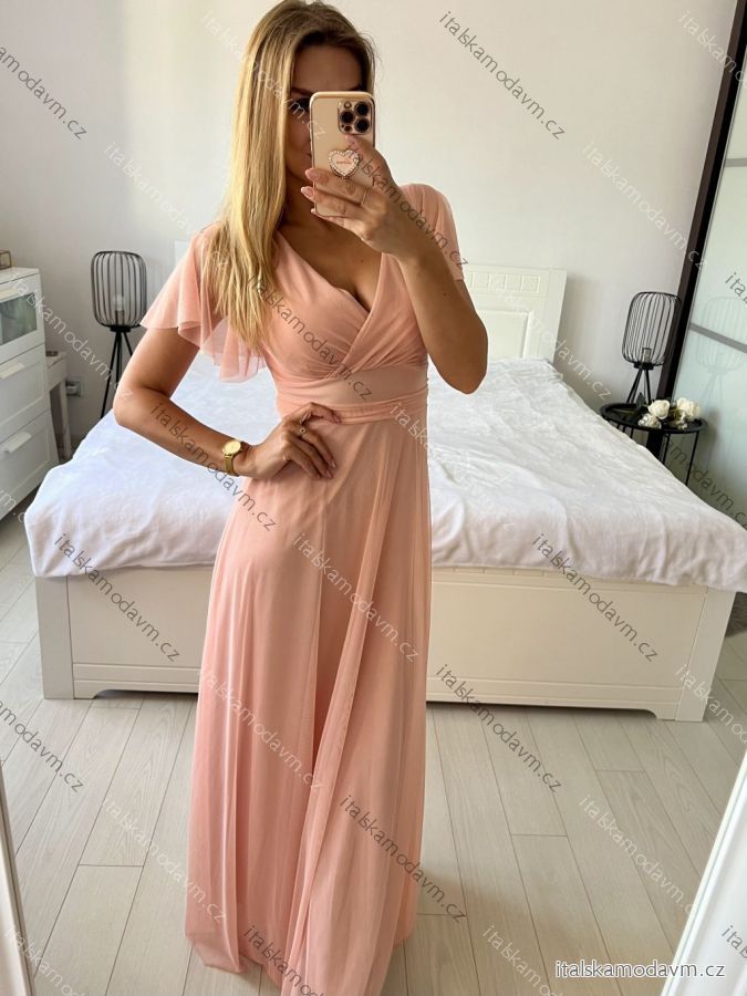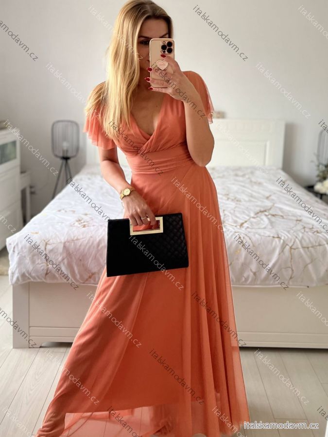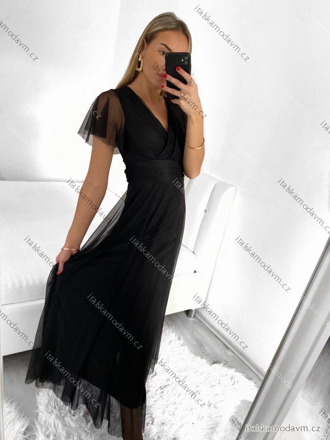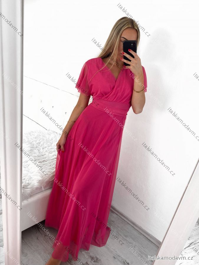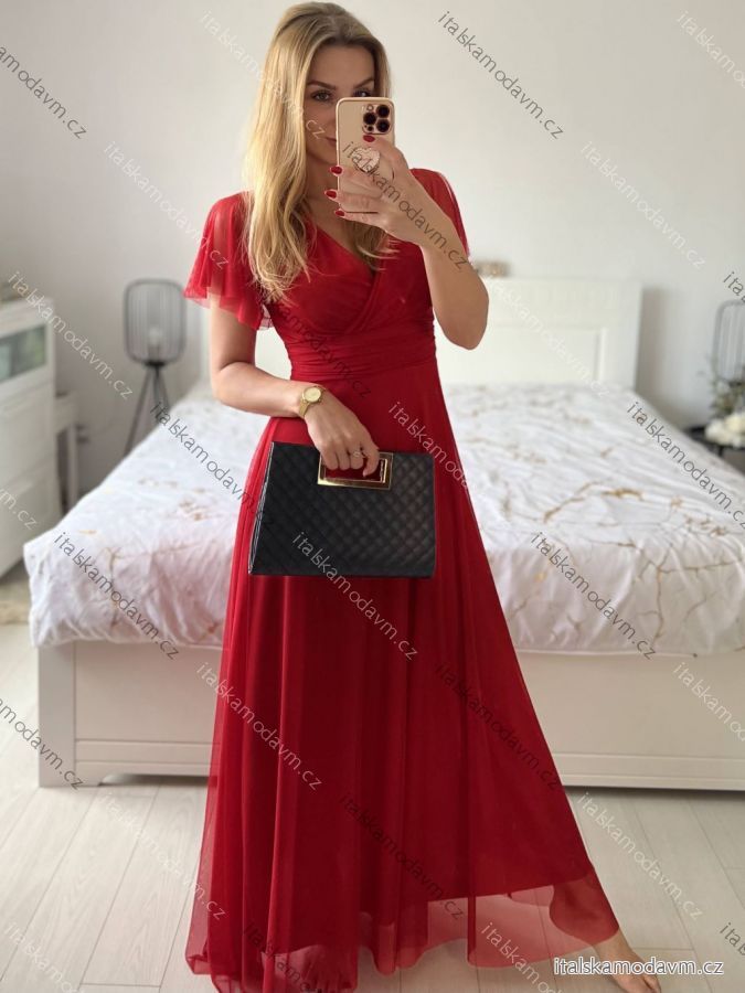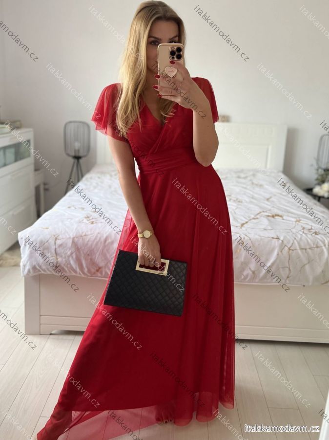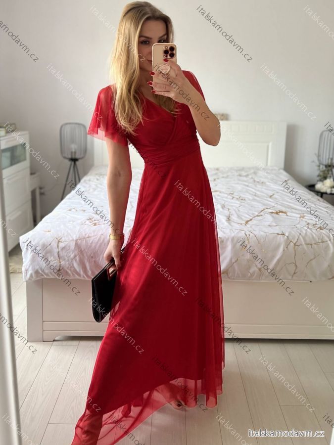 ZBOŽÍ (22220) > Šaty společenské dlouhé tylové dámské s rukávkem LILIANA (XS/S/M ONE SIZE) ITALSKÁ MÓDA IMWMY251286/DUR červená XS/S/M