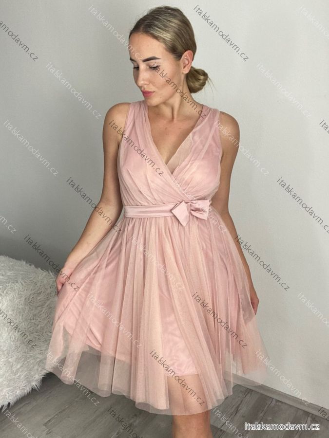 Šaty společenské elegantní krátké bez rukávů tilové dámské Nikol (S/M ONE SIZE) ITALSKá MóDA IMM22305/DR starorůžová