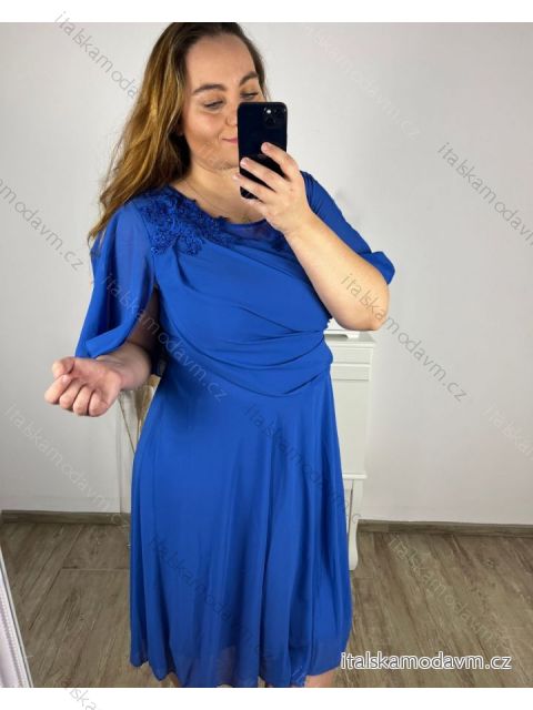 ZBOŽÍ (21842) > Šaty společenské elegantní šifonové krátký rukáv dámské nadrozměr (XL/2XL/3XL ONE SIZE) ITALSKÁ MÓDA IMM2380735/DUR Barva královská modrá Velikost XL/2XL