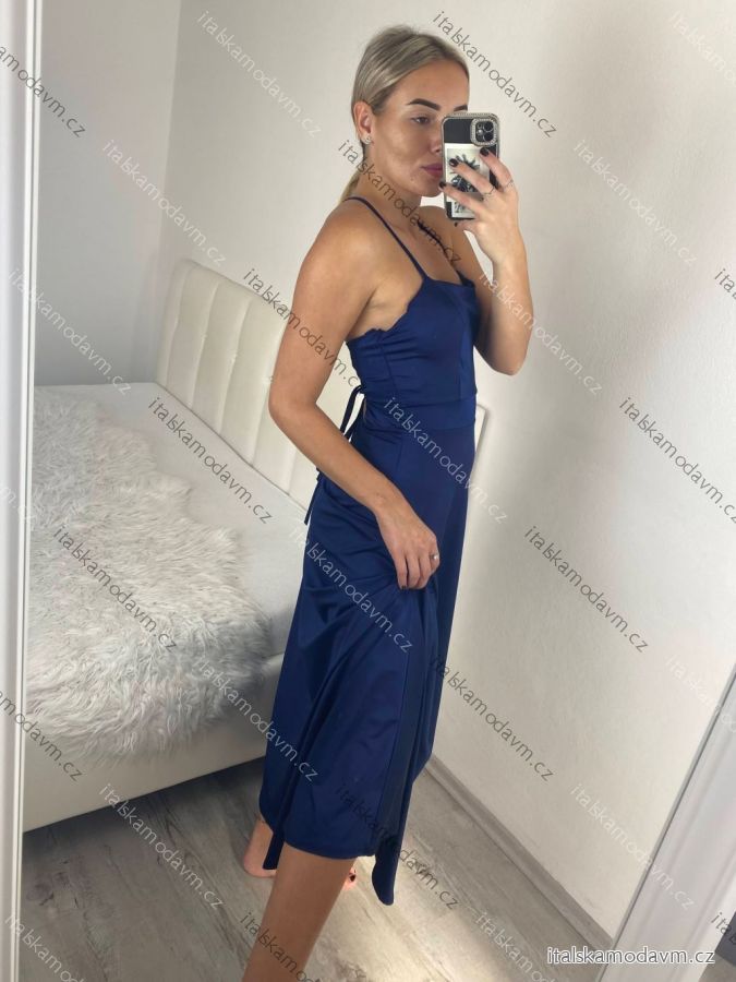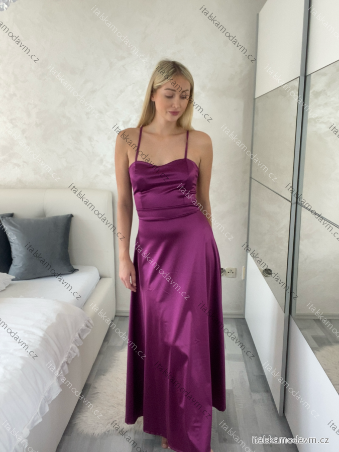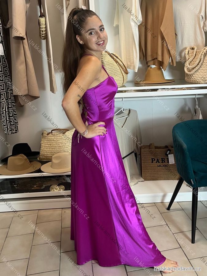 Šaty spoločenské dlhé elegantné na ramienka šnurovacie dámske ROSE (S/M ONE SIZE) TALIANSKA MODA IM323013/DUR tm. fuchsiová S/M/L