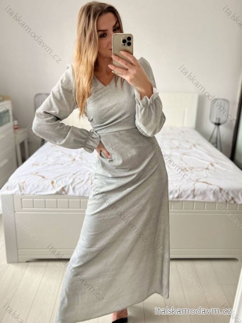 Šaty spoločenské dlhé trblietavé dlhý rukáv dámske (S/M ONE SIZE) TALIANSKA MODA IMM23FS52861/DU čierna S/M