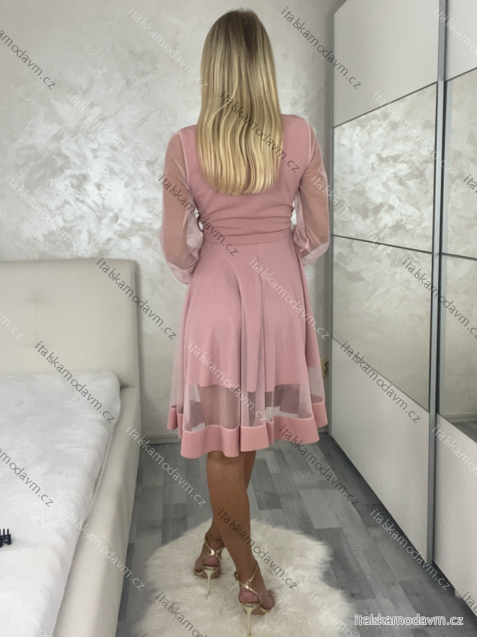 Šaty spoločenské dlouhý rukáv dámske (S/M ONE SIZE) TALIANSKA MODA IM323LUSY/DU S / M červená