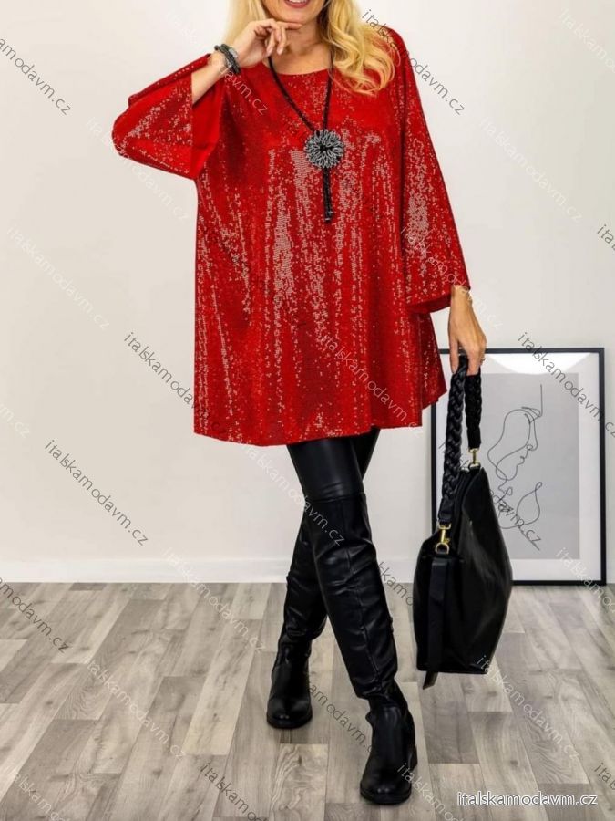 Šaty spoločenské elegantné trblietavé dlhý rukáv dámske (S/M/L ONE SIZE) TALIANSKA MÓDA IMM25M271