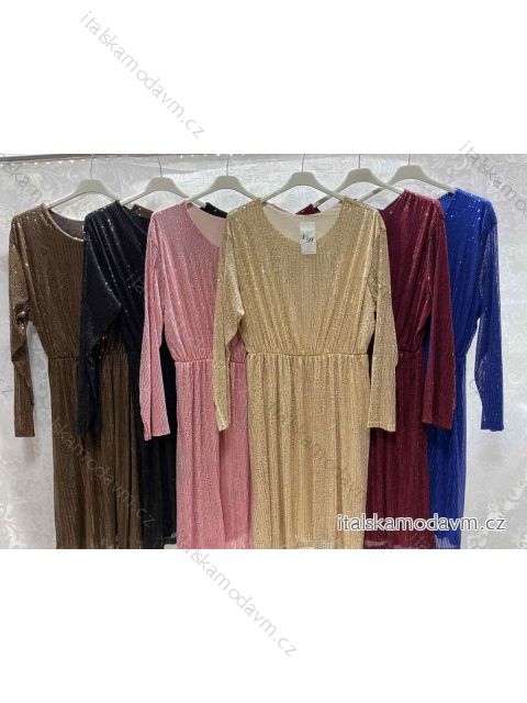 Šaty spoločenské flitrové dlhý rukáv dámske nadrozmer (3XL/4XL ONE SIZE) TALIANSKA MÓDA IMWQ23169/DUR čierna 3XL / 4XL