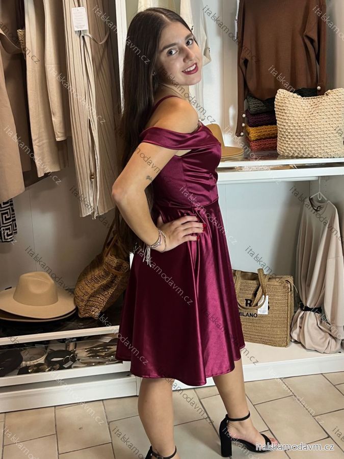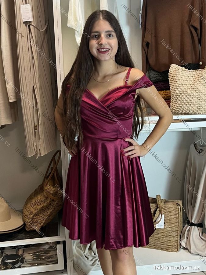 ZBOŽÍ (22817) > Šaty spoločenské saténové carmen dámske (S/M ONE SIZE) TALIANSKA MóDA IMHMS23087