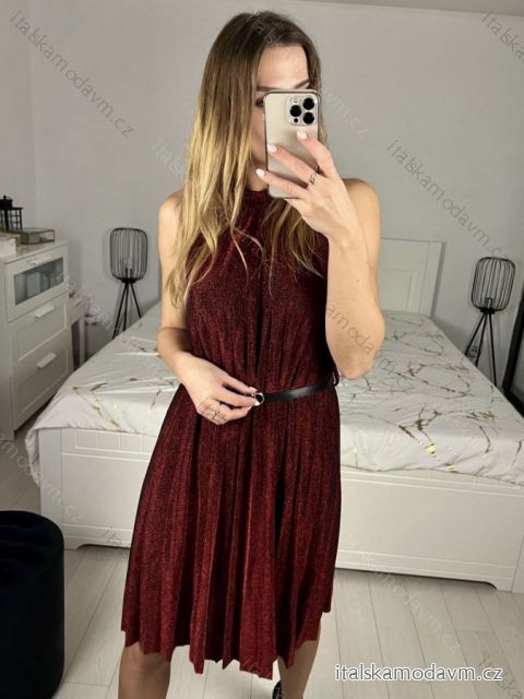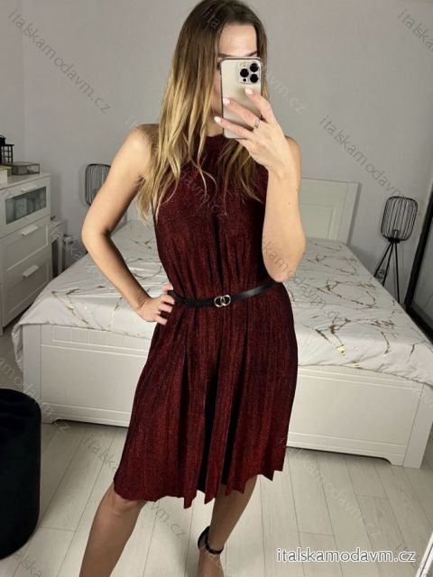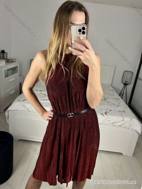 Šaty spoločenské trblietavé s opaskom bez rukávu dámske (S/M ONE SIZE) TALIANSKA MóDA IMHMS23153