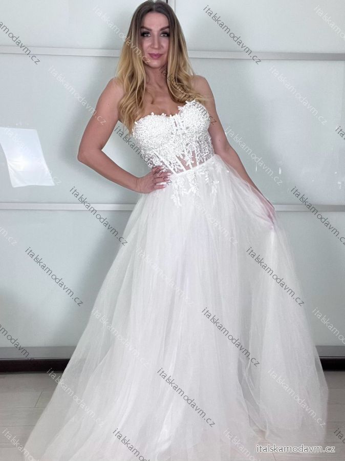 Šaty svatební elegantné spoločenské dlhé bez ramínek dámske (S/M ONE SIZE) TALIANSKA MóDA IMM2660062-S/DU M / L biela