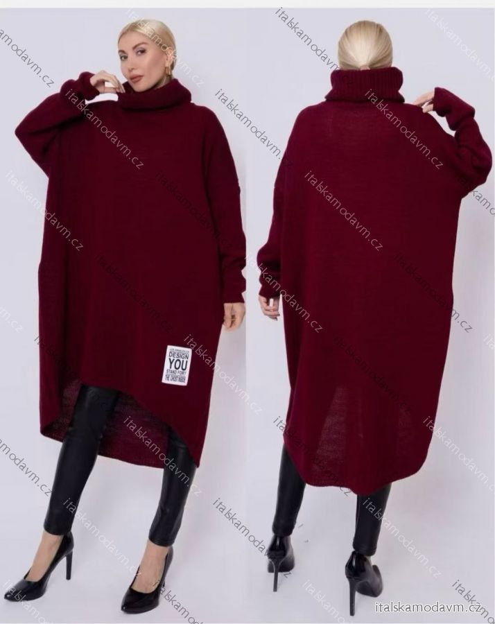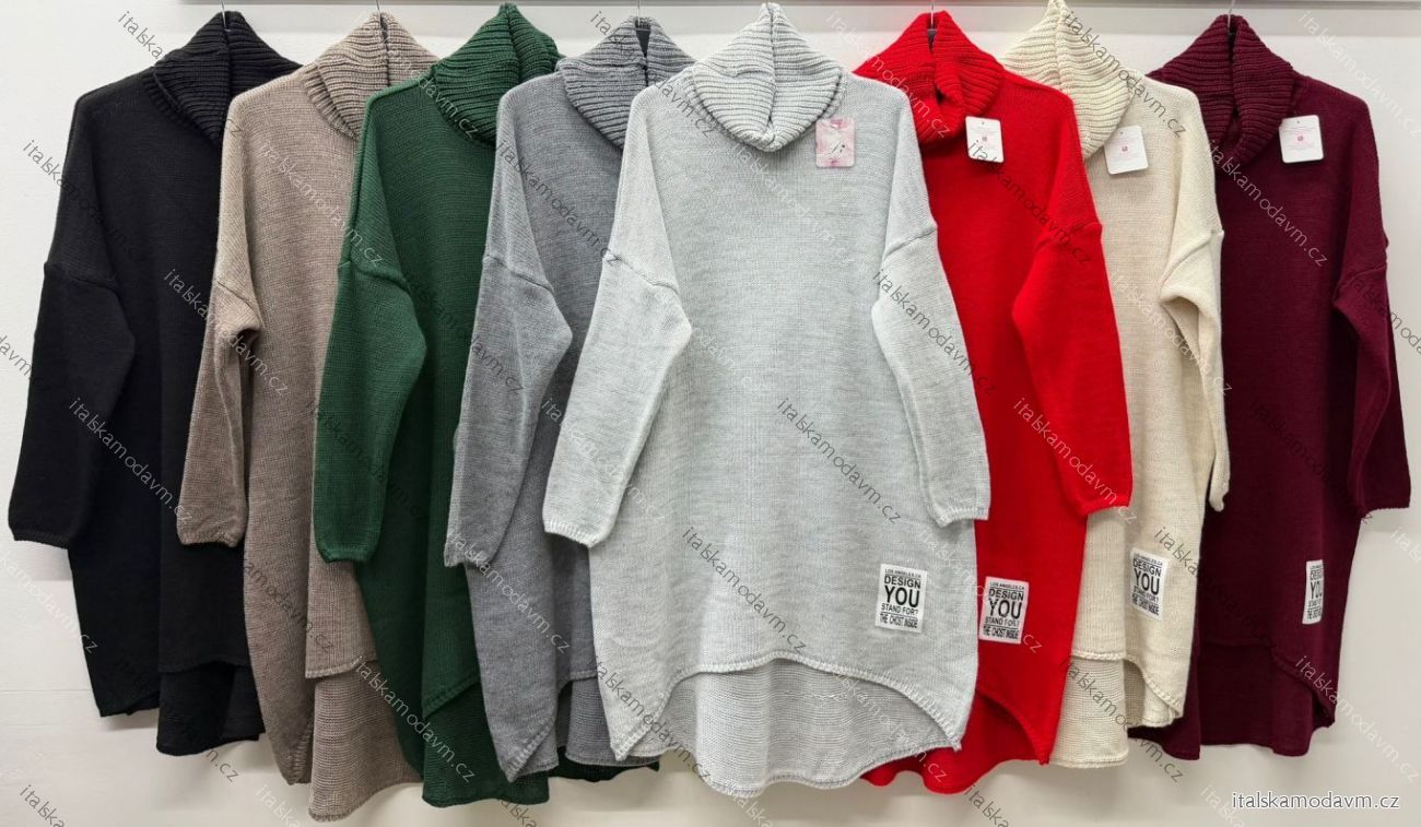 Šaty/Sveter predĺžený pletený s rolákom dlhý rukáv dámsky nadrozmer (54/56/58 ONE SIZE) TALIANSKA MÓDA IM425786