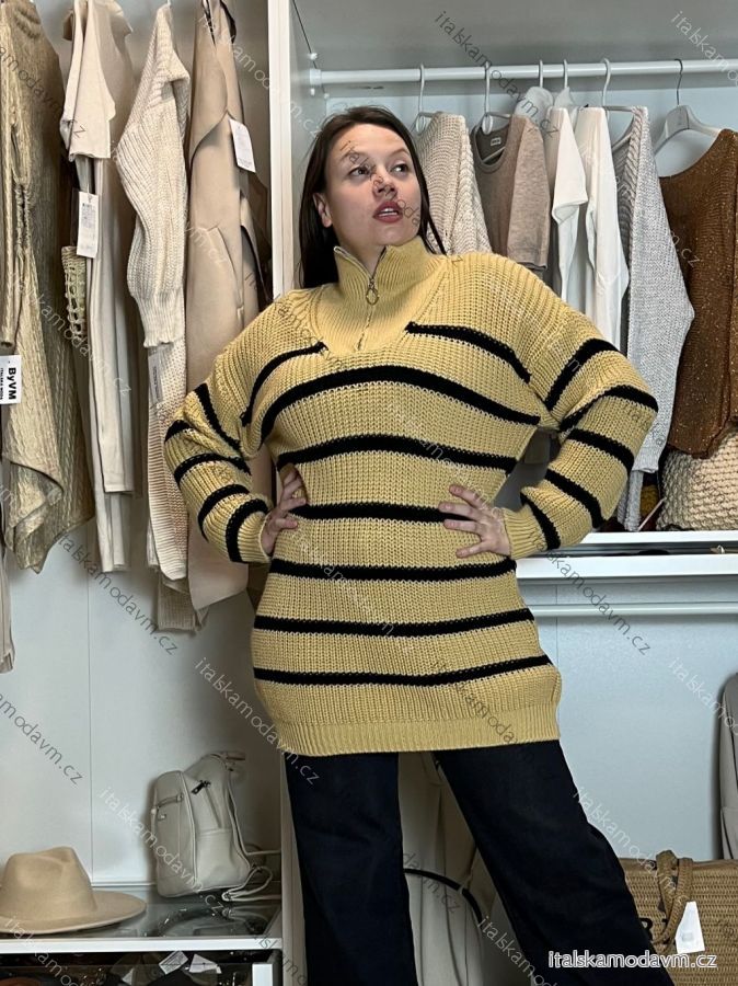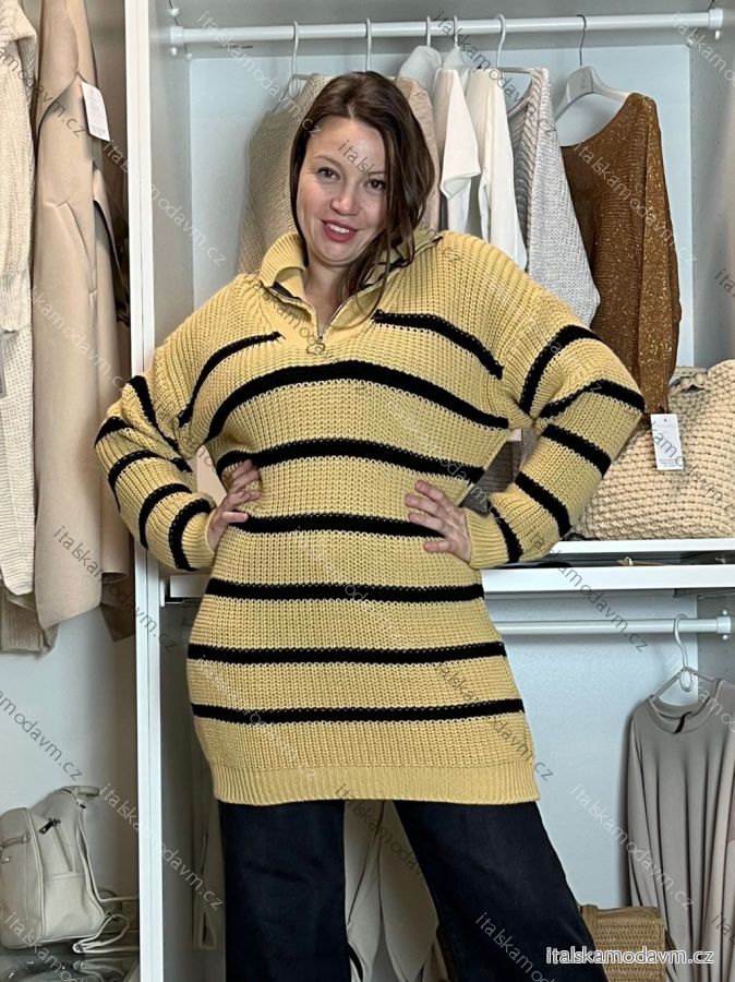 Šaty svetrové dlouhý rukáv dámske (M/L/XL/2XL ONE SIZE) TALIANSKA MÓDA IM424MILANO/DR M / L biela