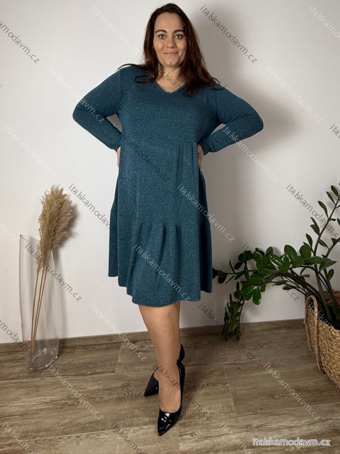 Šaty teplé dlouhý rukáv dámské nadrozměr GIZA (52/54/56 ONE SIZE) ITALSKÁ MÓDA IM425807/DUR zelená