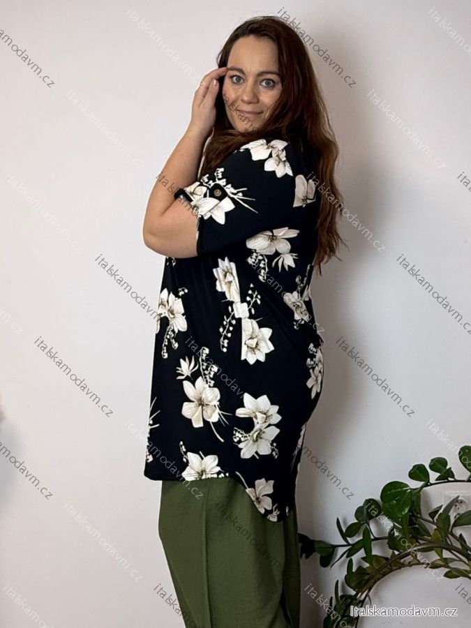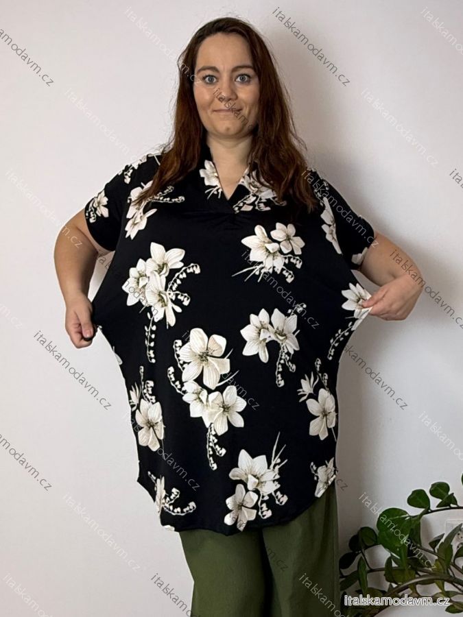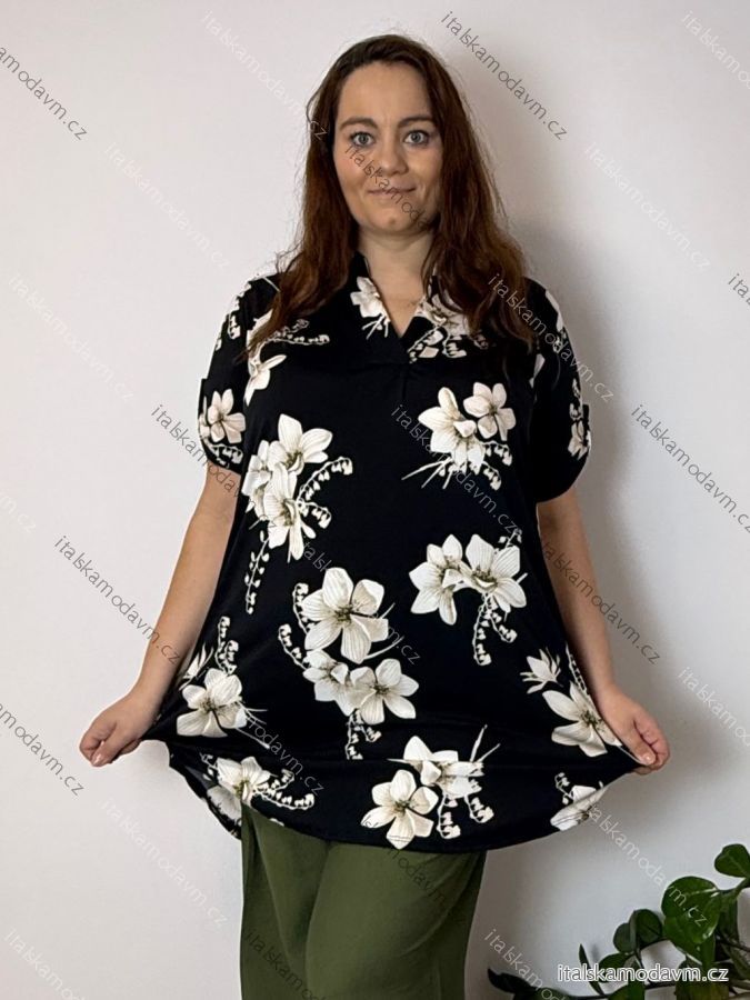 ZBOŽÍ (22205) > Šaty/tunika košeľová s opaskom krátky rukáv dámske FLOO (52/54/56 ONE SIZE) TALIANSKA MóDA IM3261112-2/DU čierna