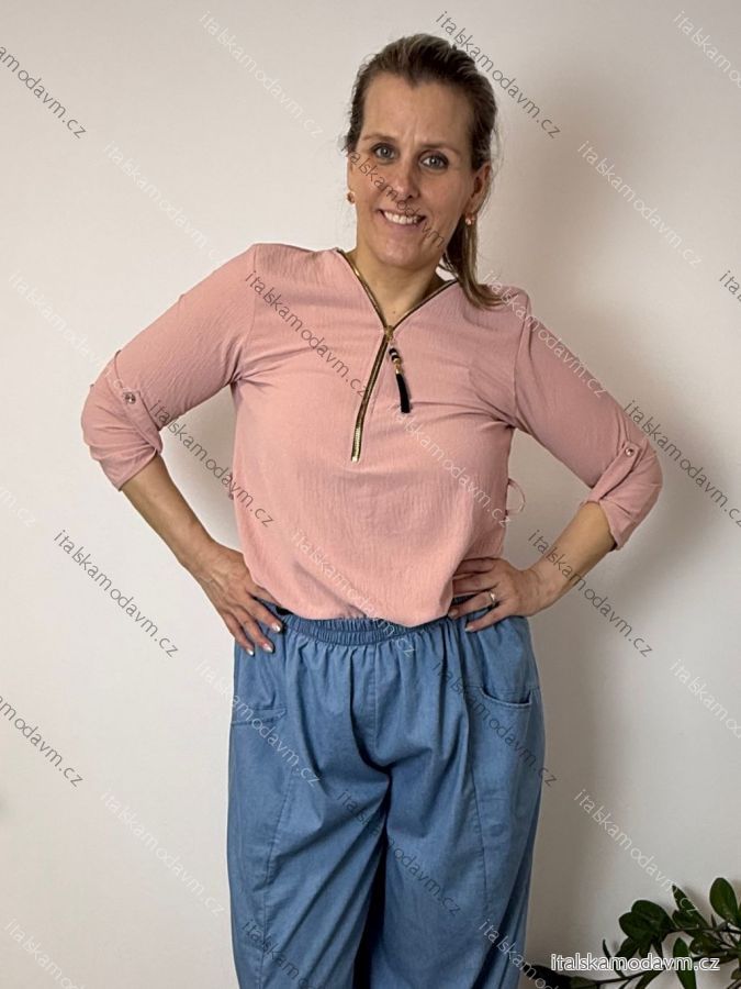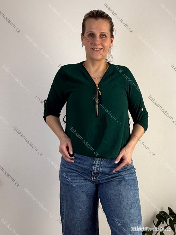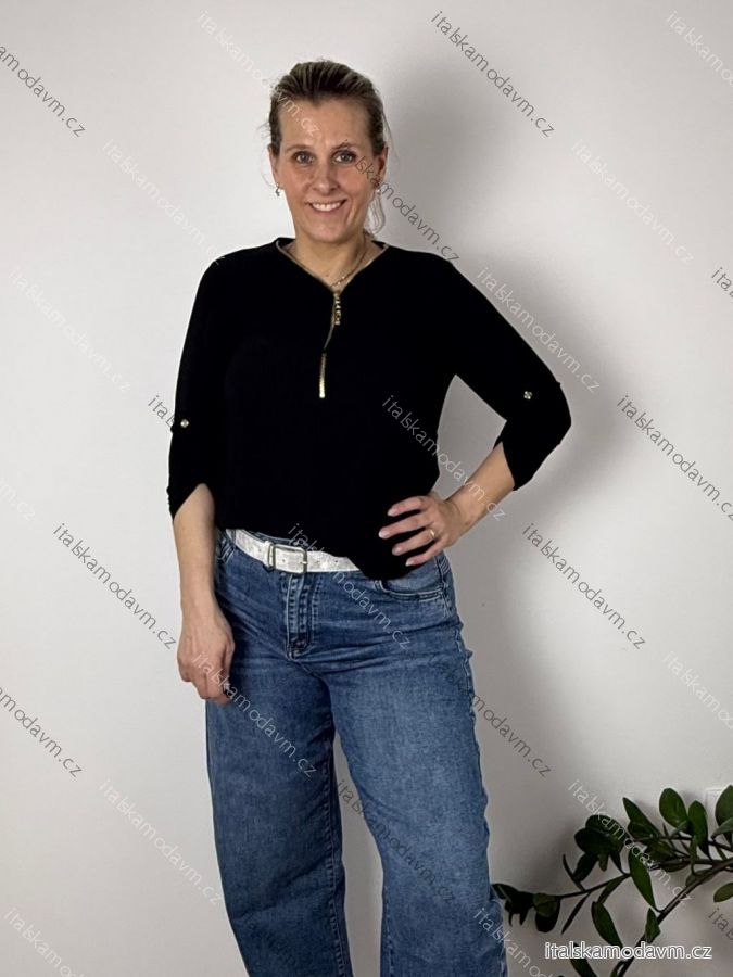 Šaty/tunika so zipsom a opaskom dlhý rukáv dámske nadrozmer (S/M/L ONE SIZE) TALIANSKA MóDA IMD22886/DU S/M čierna