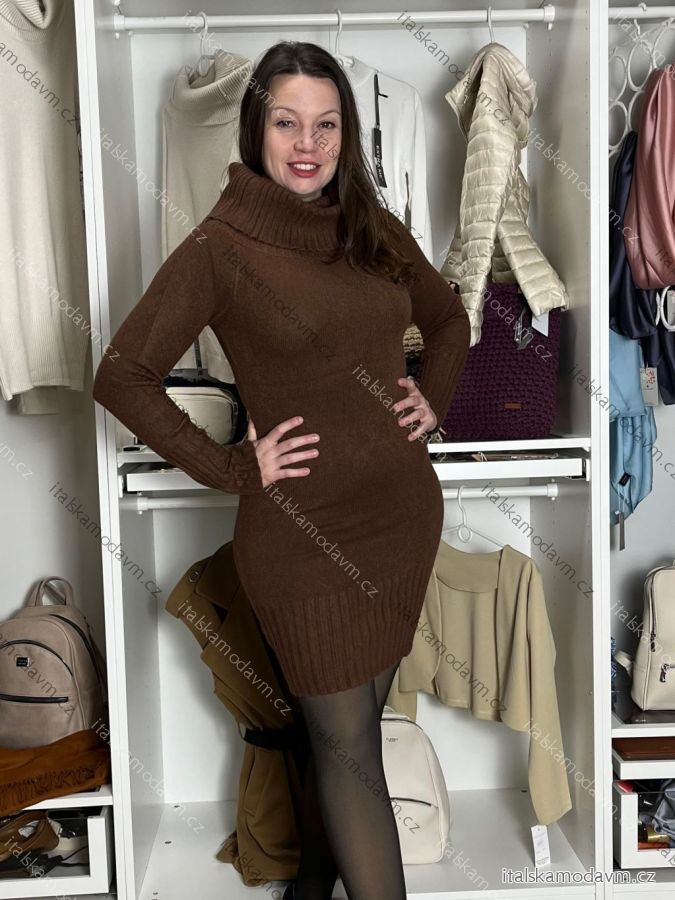 Šaty úpletové dlhý rukáv dámske INES (XS/S/M ONE SIZE) TALIANSKA MÓDA IMM25M9060/DUR XS/S/M tmavo hnedá