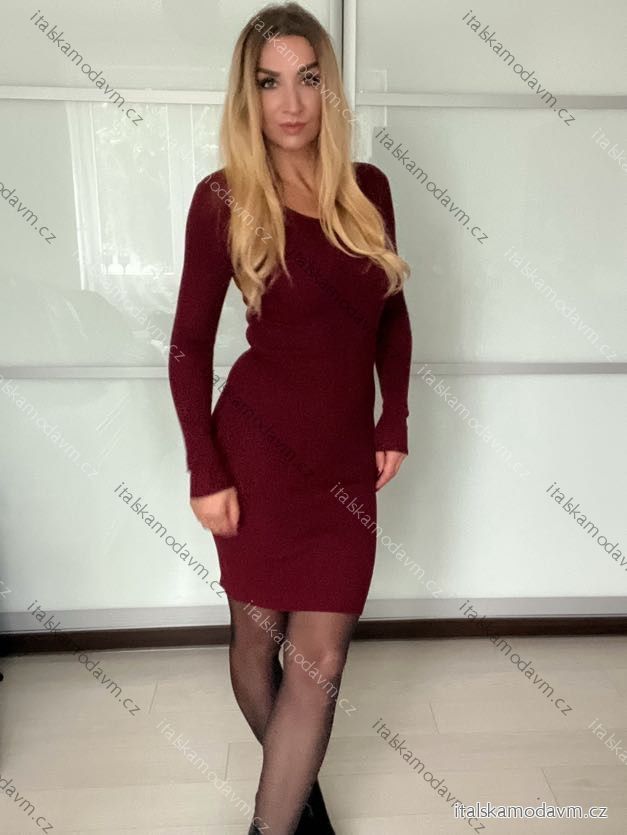 Šaty úpletové dlouhý rukáv dámské (S/M/L ONE SIZE) ITALSKÁ MÓDA IMM25M7006/DU - hnědá - S/M/L