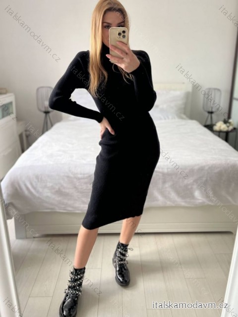 Šaty úpletové s rolákem dlouhý rukáv dámské (S/M ONE SIZE) FRANCOUZSKÁ MÓDA FMWT22J51765/DUR Černá S/M