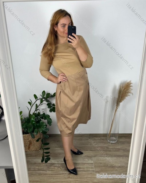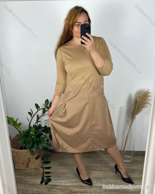 Šaty voľnočasové bavlnené 3/4 rukáv dámske nadrozmerné (40-50) POLSKÁ MÓDA PMF24MARGARITA/DUR béžová 40