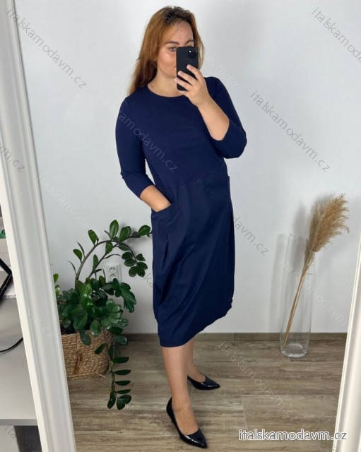 Šaty volnočasové bavlněné 3/4 rukáv dámské nadrozměrné (40-50) POLSKÁ MÓDA PMF24MARGARITA/DUR tm. modrá 42