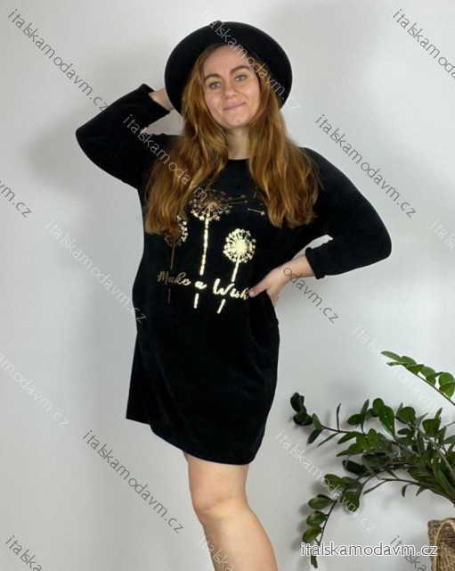 Šaty voľnočasové dlhý rukáv dámske nadrozmer (54/56/58 ONE SIZE) TALIANSKA MÓDA IMSM24WISH/DR 56/58 čierna