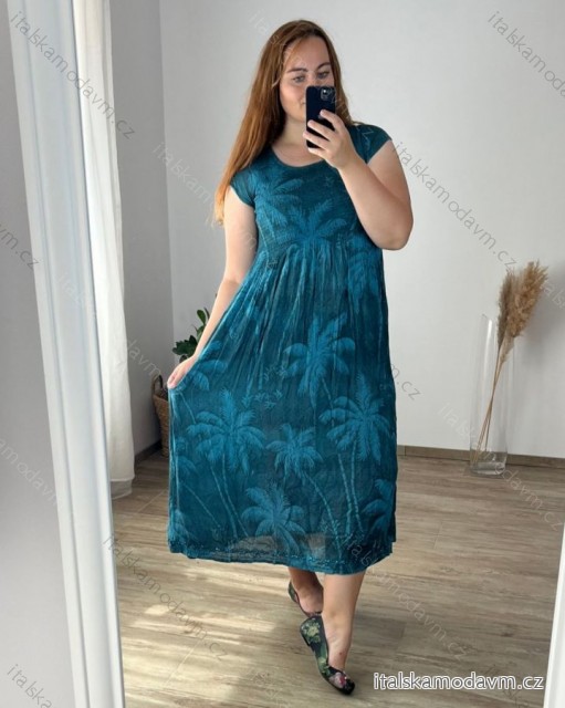 ZBOŽÍ (22079) > Šaty voľnočasové krátky rukáv dámske nadrozmer (52/54 ONE SIZE) TALIANSKA MÓDA IMBM24B-23594/DU 52/54 tmavo petrolejová