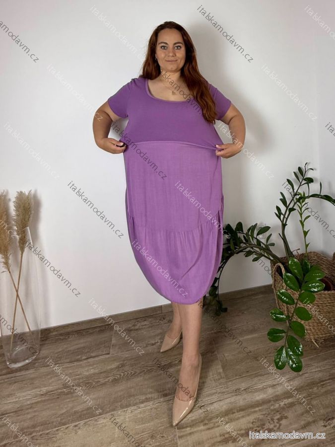 Šaty voľnočasové letné krátky rukáv dámske nadrozmer MAGIE (46/48/50 ONE SIZE) TALIANSKA MÓDA IM425270/DUR fialová 48/50