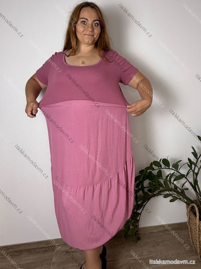 ZBOŽÍ (22564) > Šaty voľnočasové letné krátky rukáv dámske nadrozmer MAGIE (46/48/50 ONE SIZE) TALIANSKA MÓDA IM425270/DUR fialová 48/50