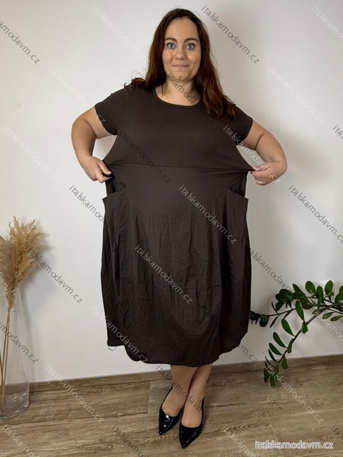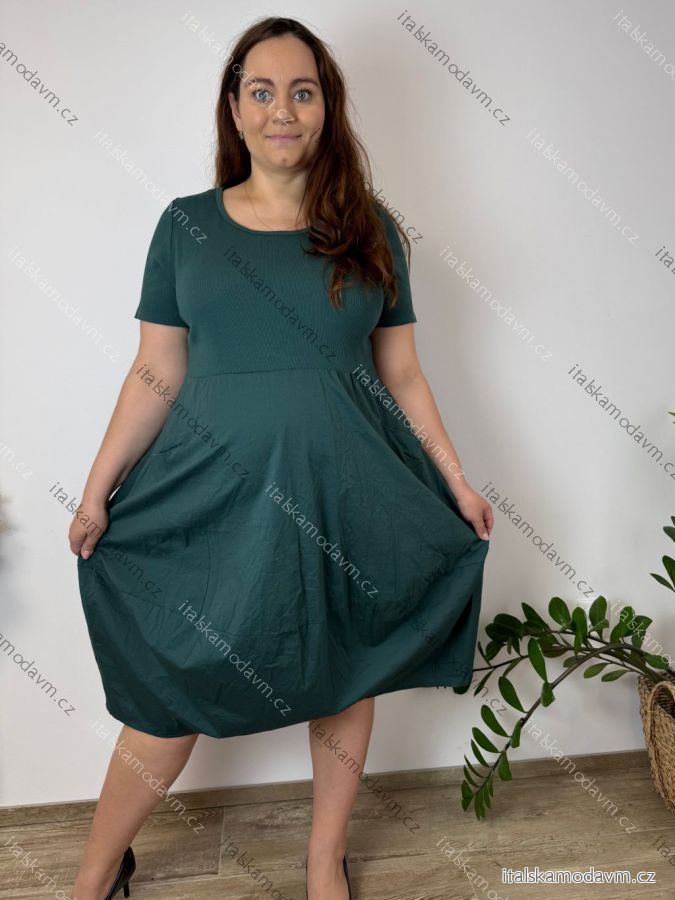 Šaty volnočasové letní krátký rukáv dámské nadrozměr ANGELA (48/50/52 ONE SIZE) ITALSKÁ MÓDA IM4260021/DUR 48/50/52 zelená staromintová