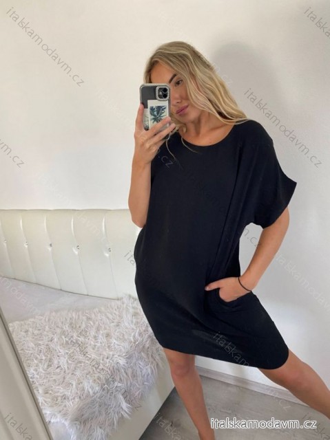 Šaty voľnočasové oversize krátky rukáv dámske letní nadrozmer (44/48 ONE SIZE) TALIANSKA MODA IM723POLY/DUR 44/48 čierna