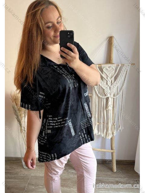 Šaty volnočasové s kapucí krátký rukáv dámské nadrozměr (3XL/4XL ONE SIZE) ITALSKá MóDA IM423354